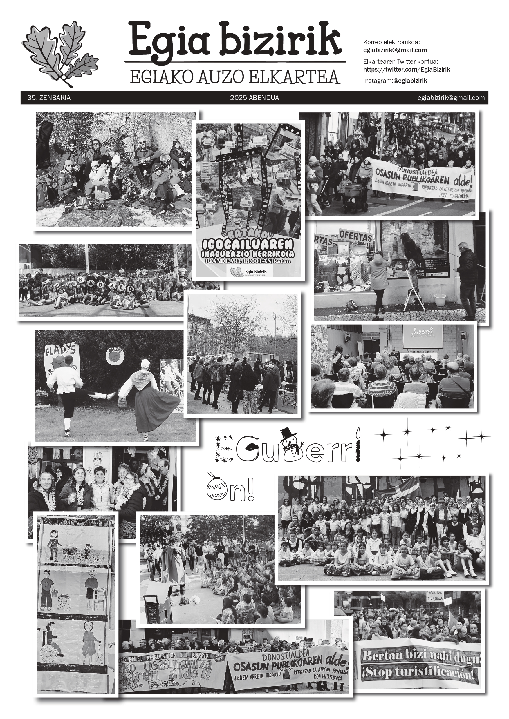 Ya ha pasado un tiempo desde que la Asamblea de Egia aprobó el proyecto de Auzoetxea como centro cívico del barrio, con la posterior ocupación del Oncológico y las reuniones y negociaciones con Kutxa y el Ayuntamiento. El resultado de todo lo anterior ha sido nulo, y tanto Kutxa como el Ayuntamiento han ninguneado nuestras propuestas y nuestro intento de colaboración. Mientras, vemos el dineral que se gasta en iniciativas tipo Tabakalera, que no satisfacen las necesidades de las egiatarras.